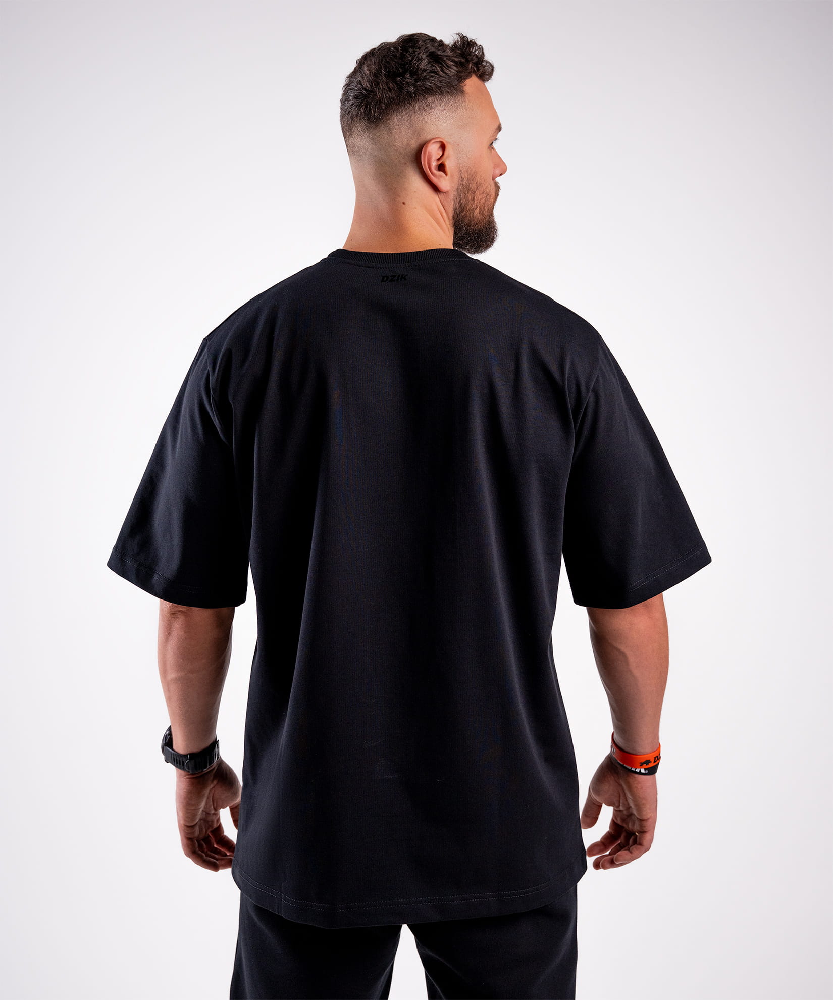 T-shirt oversize dla fanów luźnego, sportowego stylu, idealny na trening i na co dzień. Posiada 2 nadruki: na klatce piersiowej oraz na karku (wykonany z folii).