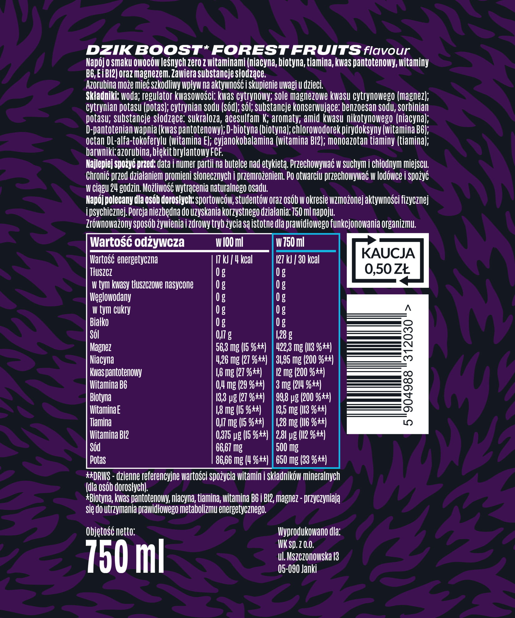 DZIK® BOOST OWOCE LEŚNE - 750 ML