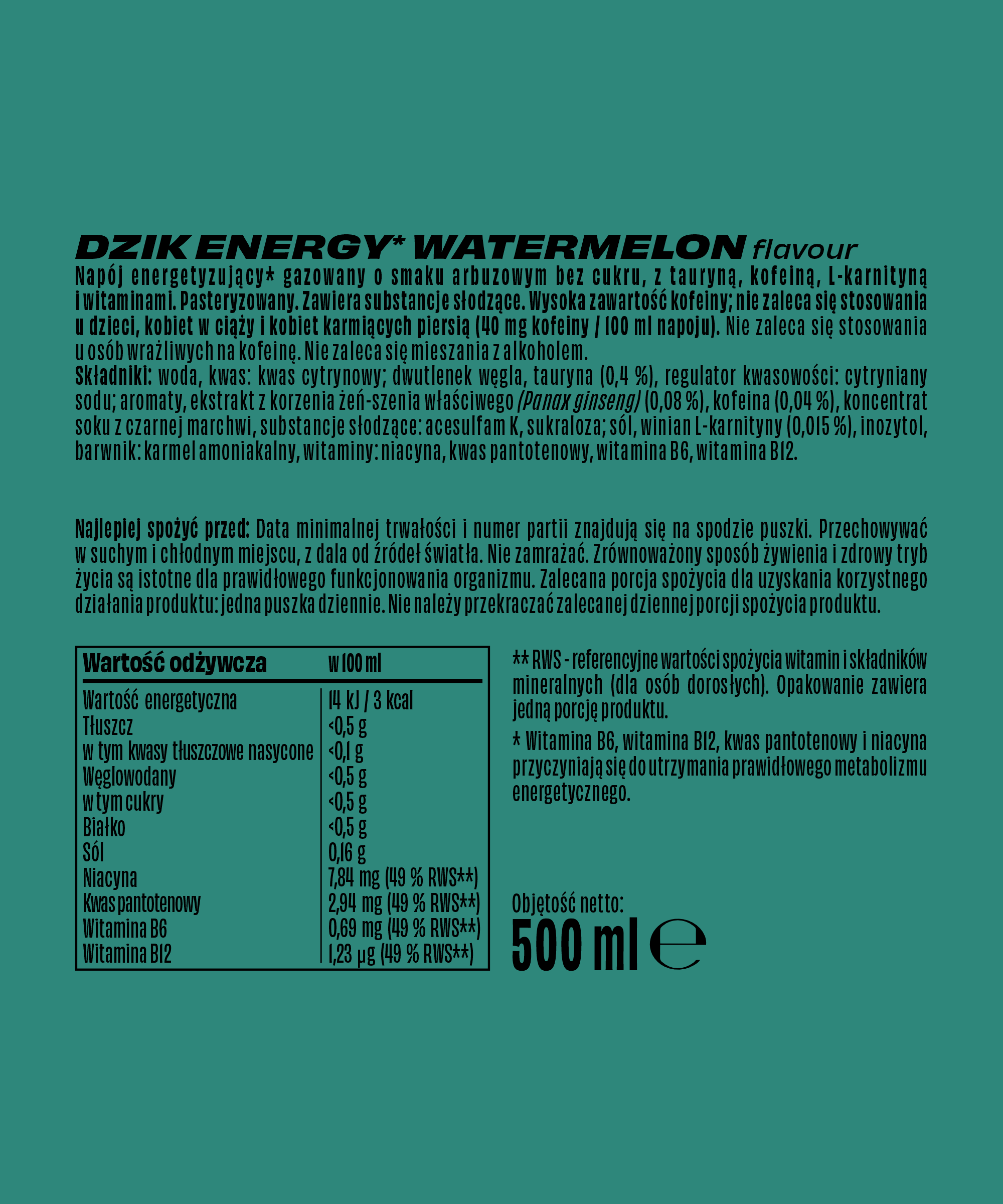 Zawartość kofeiny w puszce: 200 mg
