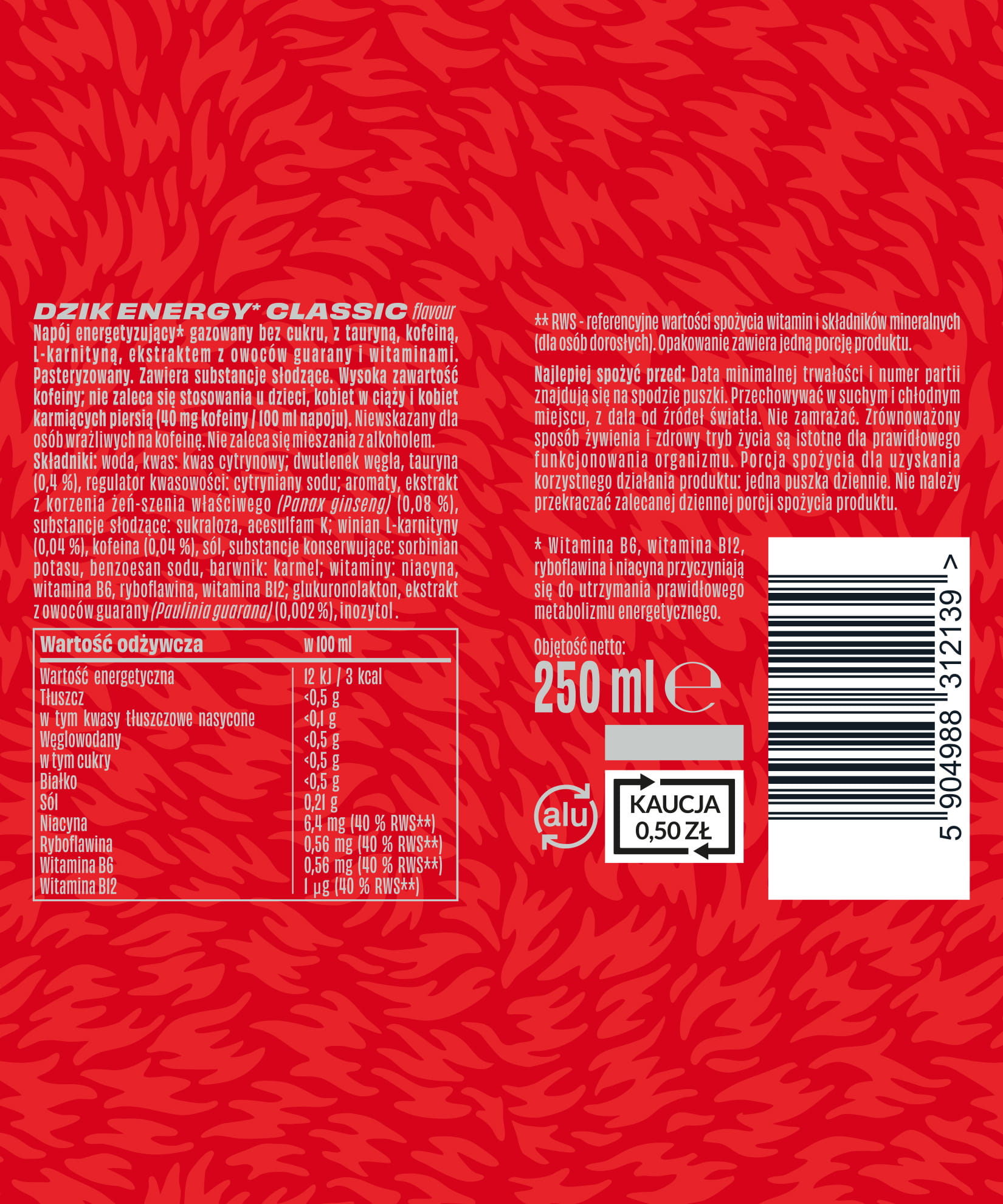 Zawartość kofeiny w puszce: 100 mg
