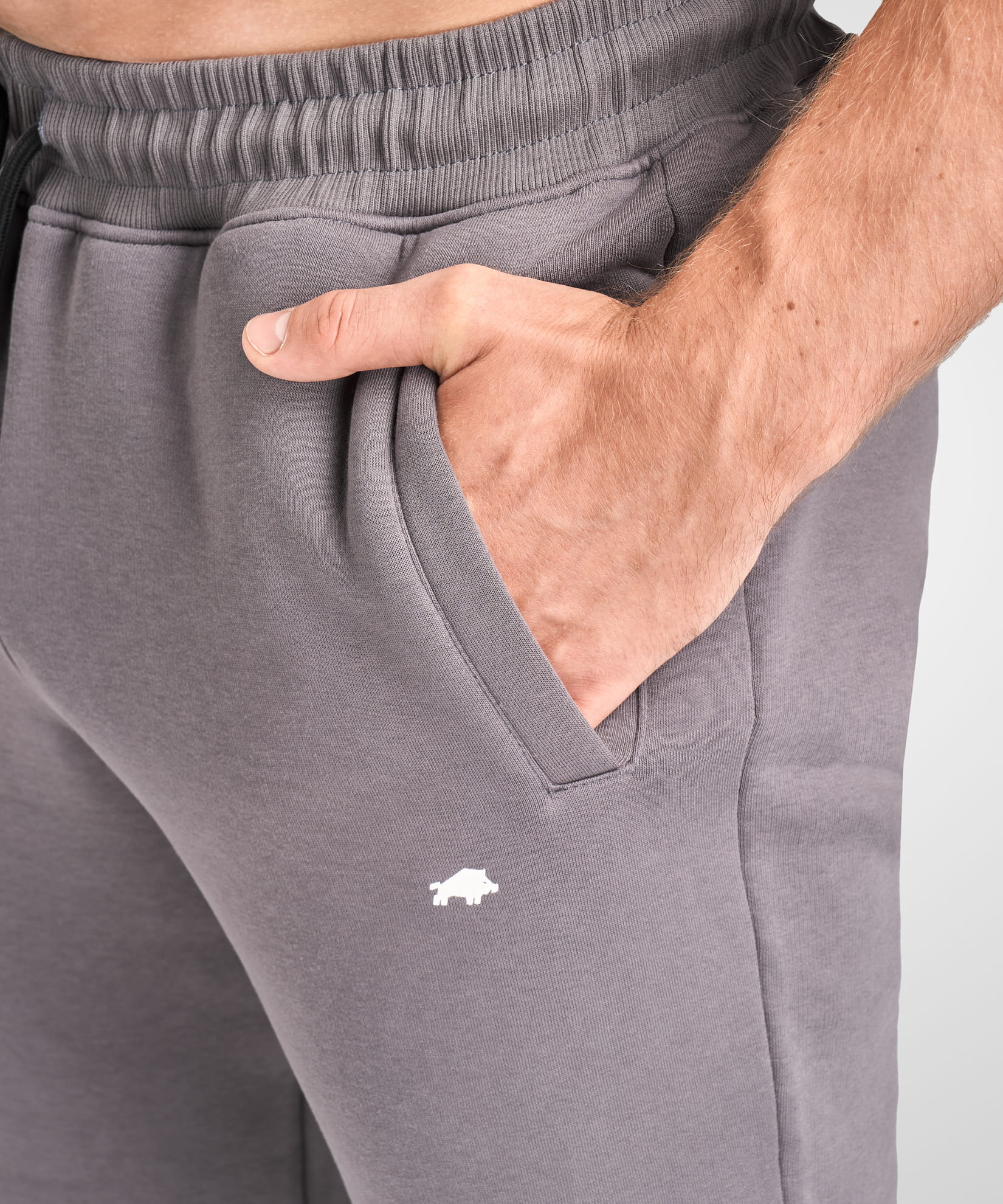 Spodnie dresowe o regularnym kroju z obniżonym stanem. Na lewej nogawce posiadają nieduży nadruk wykonany metodą sitodruku. Szerokość pasa regulowana jest sznurkiem, który został wykończony naszymi autorskim, metalowymi kłami.