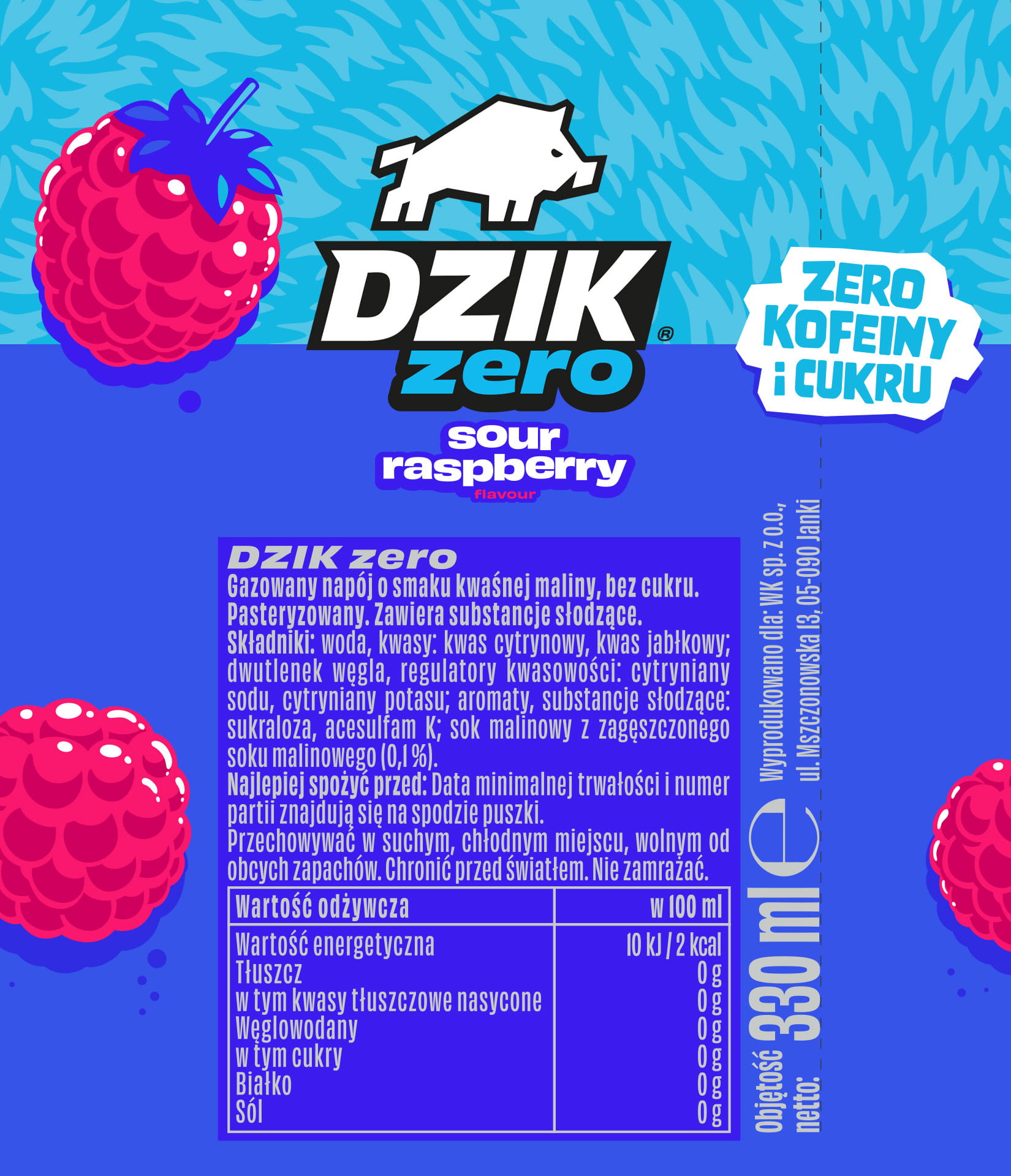 Dla tych, którzy uwielbiają napoje gazowane, ale chcą dbać o sylwetkę i zdrowie: DZIK® ZERO o pysznym, winogronowym, słodkim i orzeźwiającym smaku, bez konsekwencji. Nasze napoje ZERO nie zawierają cukru, ani kalorii. Są bezpieczne dla osób na redukcji i każdego, kto stara się ograniczyć spożycie cukrów. Owocowe napoje gazowane DZIK® ZERO nie zawierają także kofeiny, a więc mogą być spożywane przez osoby w każdym wieku. To, co dodatkowo je wyróżnia to brak barwników. Największym atutem jest jednak smak: idealnie wywarzona słodycz i orzeźwienie zamknięte w małej, wygodnej puszce 330 ml.
